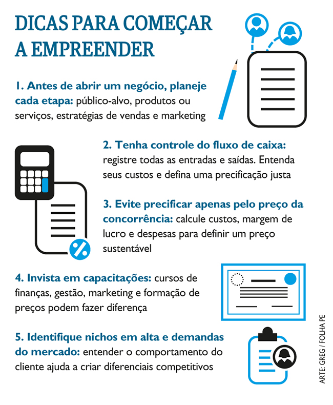 Essa demanda é um dos principais receios de quem começa a empreender e uma das causas que levam os novatos no segmento a procurarem o Sebrae, junto a dúvidas sobre precificação, segundo o especialista de Finanças e Contabilidade da instituição, Cleto Paixão.